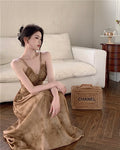 New Chinese Style Halter V-Neck Maxi Dress